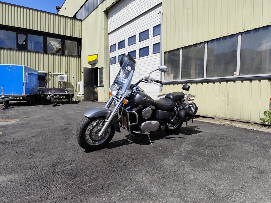 Всем привет. Недавно осуществилась моя мечта, я купил наконец-то свои полтора литра счастья, Kawasaki Vulcan VN1500 Classic 1997 года выпуска. Этой весной появилась мысль проапргейдится с моей старой верной Yamaha Virago XV750cc 1994г.в. ( до нее были 1 корейский Daelim Daystar 125cc, 4 разных китайца 250сс, Kawasaki Eliminator 400SE, 2 Днепра и Урал переделаные в чоппер) что-то более мощное и кубатурное, а так как денег не густо (саму Yamaha я покупал под ремонт за 1,5К$ и своими руками привел в рабочее состояние) то выбирать особо было не из чего, я не сильно балованый и ремонтом и доработкой байка меня не испугаешь. Сейчас я живу в Норвегии и полазив по их сайтам продаж нашел 2 приемлемых варианта. Подождал пока нормально продалась Virago и доложив примерно 0.7K$ взял свою KawаСашку :-). Она приехала своим ходом, правда вся в следах ржавчины и с текущим маслом в районе шланга сцепления, без нормального глушителя, но это был настоящий, реальный, полутора литровый круизер. В общем рассчитавшись с продавцом, я примерно 150км гнал байк до дома и сердце радовалось и пело. После Ямахи чувствовалось и тяга и мощность и скорость, хотя коробка была 4х ступенчатая. При этом низкий центр тяжести и рулится легче и проще, в повороты заходит как по маслу. В общем отличный байк за свои почти 3К$. По дороге замерил расход, он приятно удивил, примерно 6.5-7л на 100 км. Приехав домой, начал фиксить косяки. Первое убрали течь масла, вырезав из паронита прокладку под натяжитель цепи грм и заменили сам натяжитель цепи грм, из под которого текло из-за трещины в корпусе, потом масло в двигателе, кардане, оба фильтра, масляный и воздушный (в воздушном жили мыши :-)), 4 свечи ( они почему-то были разные:-)), также заменил тормозную в переднем тормозе и сцеплении и прокачал как положено. Потом заменил глушитель, нашел недорого новый от HD, установил лёгкий DBkiller, чтоб соседи не прокляли :-). Также установил ветровое стекло от Ямахи, толи 1300 толи 1700, помудрив с креплением. Очистил всю ржавчину с хрома и рамы, покрасил где надо, чтоб был нормальный внешний вид. После всех танцев с бубном залил бенз и теперь гоняю каждый день и радуюсь, а байк, наверно, тоже, судя по всему на нем ездили не часто, пробег 45000 км с 97 :-), больше стоял и пылью припадал потихоньку :-). Что я могу сказать, если хочется большой, мощный и кубатурный чоппер больше 1л обьемом, то я считаю что Kawasaki Vulcan VN1500 Classic/Tourer самый доступный вариант для людей с нормальными руками и познаниями в технике, которые не бояться испачкать руки и пару недель провести исправляя косяки и меняя расходники для своего верного железного коня!!!